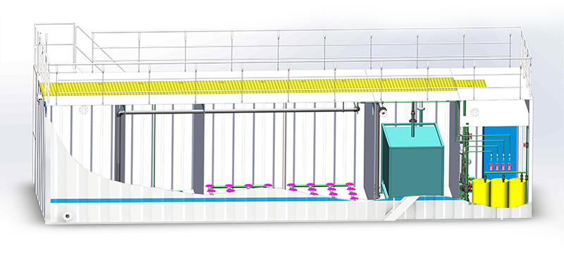 一级A处理量(t/d) | 服务人口数量 | 设备尺寸 L*W*H(m) | 设备占地 (m2) | 设备空重 (t) | 设备运行重 (t) | 装机功率 (Kw) | |